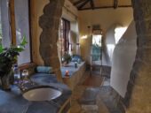 Chaque des cottages individuels possède une terrasse, parce que lorsque vous serez au lodge vous serez très certainement en train d’admirer le panorama somptueux. Les chalets, construits en pierre et en bois, sont spacieux et sont répartis autour de la colline pour permettre aux visiteurs un maximum d’intimité. Construit en respectant l’environnement, l’électricité du lodge fonctionne grâce a des panneaux solaires, mais cela signifie aussi que se rendre à la salle de bains peut parfois être une aventure. Les toilettes fonctionnent grâce à un principe écologique bien conçu mais il faut parfois un peu de temps pour s’y habituer! Le personnel amical fera tout pour rendre votre séjour le plus agréable possible. Le matin, ils versent de l’eau chaude dans la douche (qui fonctionne sur un système de «seau») et vous offrent un café fraîchement coulé ou un chocolat chaud selon votre désir.